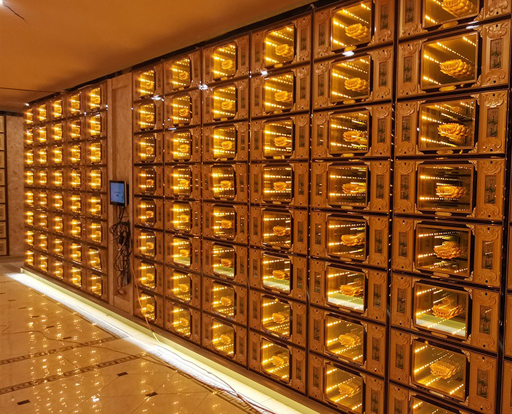 用于殯儀館、骨灰堂等骨灰存放場(chǎng)所,配合平板手機(jī)等硬件,完成一次富有儀式感及科技感的的室內(nèi)智能祭拜。